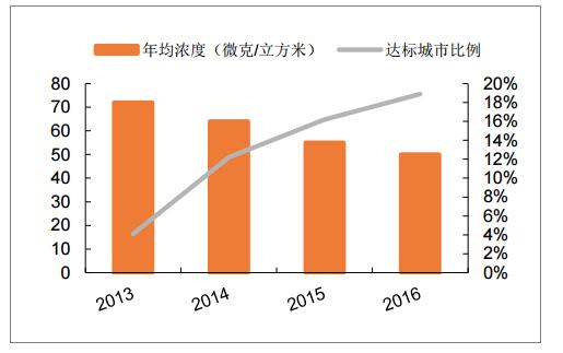 3、我国大气污染物中SO2治理已取得较大进展,PM2.5达标城市比例仍处于较低水平,将是未来治理重点。工业企业排污是造成PM2.5超标的主要原因。2014年,我国火电超净排放标准推出,以颗粒物为例,超净排放标准为10微克/立方米,相比旧标20微克/立方米的特别排放限值下降50%。火电装机主要集中在五大电力集团,易监管且实施超净排放改造有相应补贴,多数情况下可覆盖治理成本,因此推进速度较快。2016年,各电力集团超净排放机组功率占在运营总机组的比例都已达50%以上。截至目前,我们预估火电超净排放改造完成率超过65%,剩余市场空间约140亿元左右。