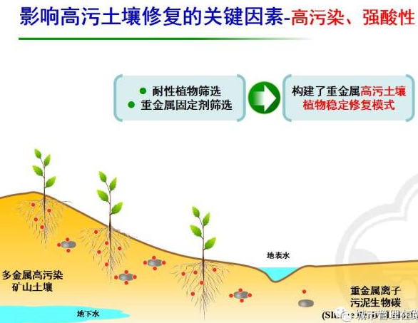 在植物稳定方面,仇教授由“重金属耐性植物筛选及其耐受机理研究”,“重金属固定剂的修复功能研究”和“高污土壤植物稳定修复模式”介绍了课题组的工作,并提出多金属污染土壤修复模型。