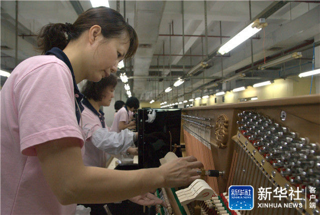 这是珠江钢琴集团的立式钢琴装配生产线(资料照片)。新华社发