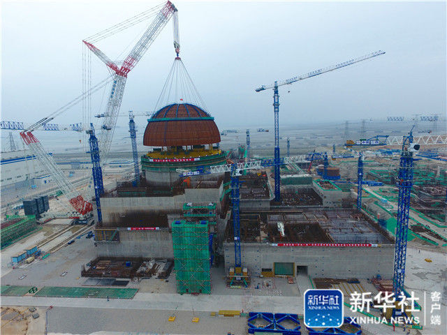 5月25日,“华龙一号”全球首堆示范工程福建福清核电5号机组完成穹顶吊装。新华社记者 姜克红 摄