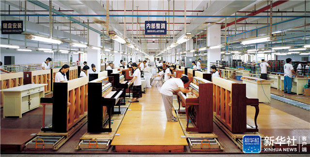 这是珠江钢琴集团的立式钢琴装配生产线(资料照片)。新华社发