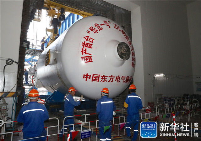 11月10日,“华龙一号”全球首堆示范工程福建福清核电5号机组首台蒸汽发生器顺利吊至5号机组反应堆厂房16.5米平台。新华社记者 姜克红 摄